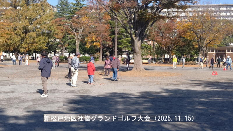 社協主催の新松戸地区のグランドゴルフ大会が新松戸中央公園で開催されました