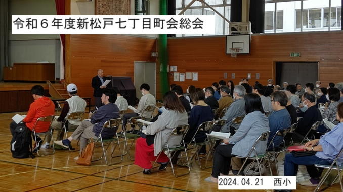 令和7年(2025)4月20日(日)10時より、新松戸西小の体育館で新松戸七丁目町会定例総会が新松戸支所長・西小の校長など多数の来賓をお迎えして開催されました。