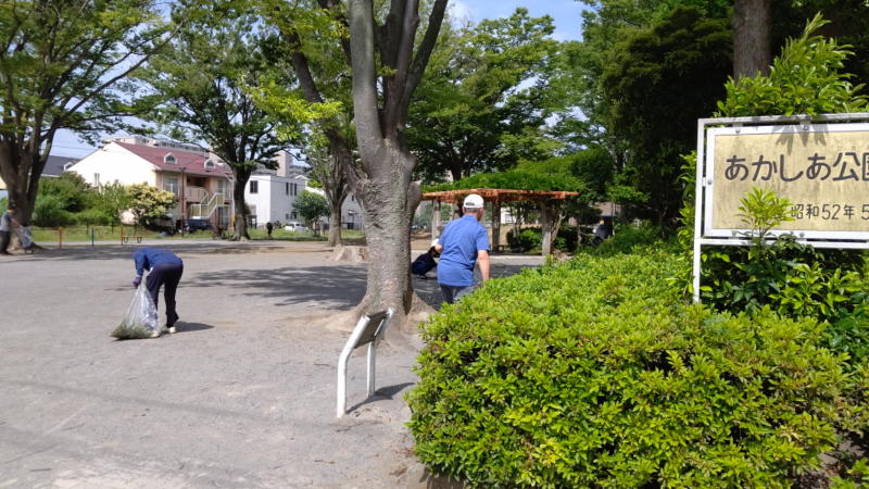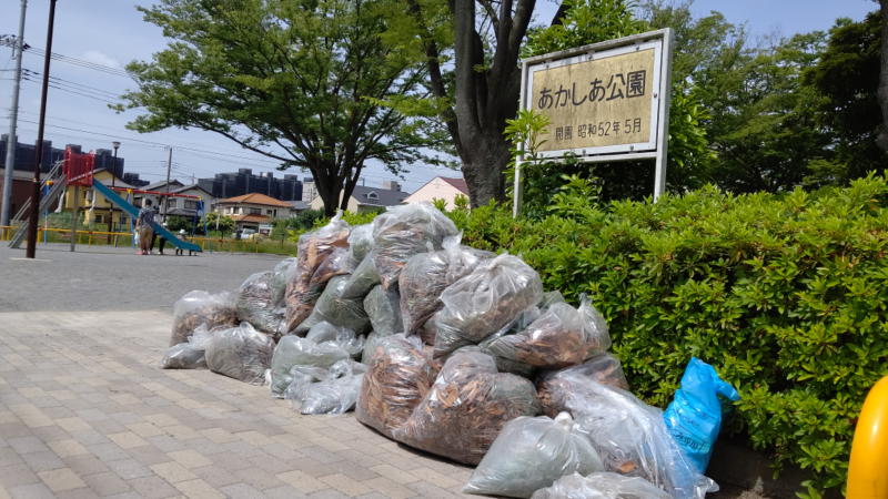 5/25(日)昨夜の雨も上がり公園には水たまりができている中4つの公園で200名をこえる町会員の皆さまが参加して近くの公園や家の周りの清掃を行いました。 子供さんの参加も多かったです。 一時間程の清掃で多くのごみが集められ、すっかりきれいになりました。