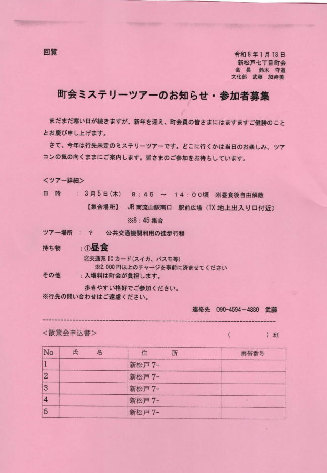 1・町会ミステリーツアーのお知らせ (文化部) ※