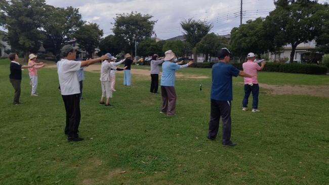 満開のつつじを見ながらあかしあ公園で太極拳を楽しんでいます。
