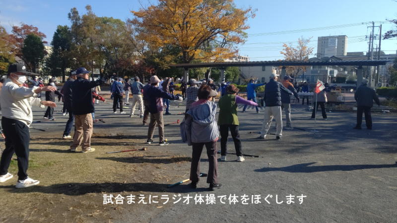 社協主催の新松戸地区のグランドゴルフ大会が新松戸中央公園で開催されました