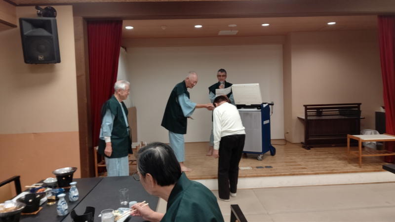 夜はお楽しみ、グラウンドゴルフ大会の成績発表と表彰式を兼ねた夕食会。