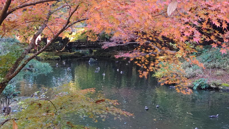 寺や池や滝のとの調和のなかに色ずく木々、散策を通し深まる秋を堪能した一日でした。 (八重樫記)